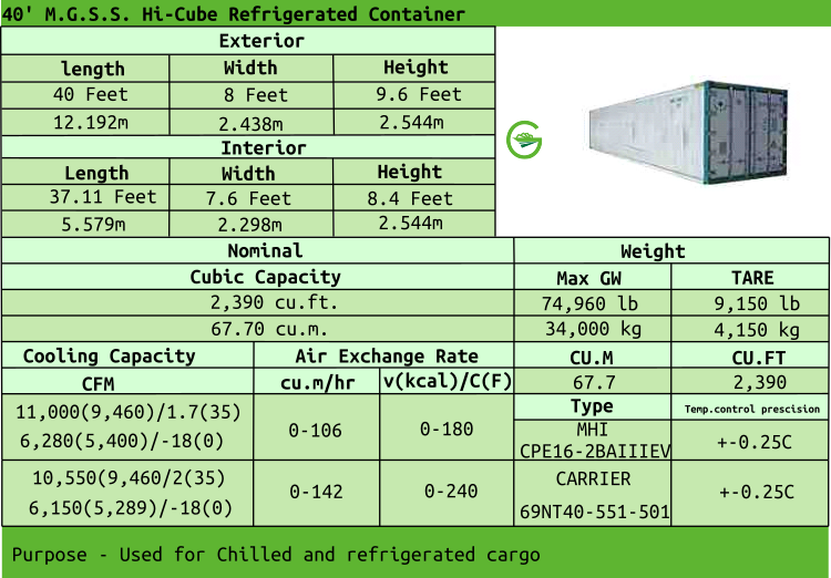 40' Hi-Cube Steel Dry Cargo Container | 40' M.G.S.S. Hi-Cube Refrigerated container |